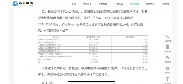 收到增资议案后,2022年12月11日,上海证大、上海淳大、上海随道发布《关于变更注册资本事宜的回函》,表示愿意承担增资义务。2023年1月13日,长安信托第一次临时股东大会通过《关于公司增加注册资本的议案》,由西投控股、上海淳大、上海证大、上海随道和西安高新5家公司增资,增资完成后总体比例保持不变。