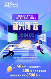 为加快人才集聚,成都天府软件园于日前启动了“新兴向“蓉”成都天府软件园2022年秋季线上招聘会”系列活动,以定向挖掘、校园宣传、直播带岗等多种方式展开系列招聘活动,为广大求职者和用人单位搭建起立体化的对接通道。该系列活动,改变了以往企业单独招聘成本高、效果不确定的情况,将园区优质企业集结起来组团招聘,计划在北京、上海、广州、深圳、成都、重庆、武汉、杭州等40余个省内外重点行业对口城市同步开展定向挖掘,同时还将面向约100所省内外重点专业对口高校进行多轮宣传。据悉,本次线上招聘会因其触达面广,挖掘人才精准等优势,一经推出就得到了园区企业的积极响应。截止目前已有鼎桥、芯原、百词斩、长虹、微光集电、宏利金融、爱旗、数字天空等近40余家园区企业参加,预计将提供针对计算机类、电子信息类、通信类、电气类、机械类、自动化类、金融类、美术设计、财务、人力资源、市场营销等专业的软件研发、前端开发、移动研发、通信及硬件研发、电子/电气/自动化、半导体/芯片、运维支持、测试工程师、售前售后工程师、视觉/交互设计、动画动效设计、运营/专业分析、市场/品牌推广、策划、销售/商务拓展、产品经理等岗位400余个,岗位需求人数高达3500人。